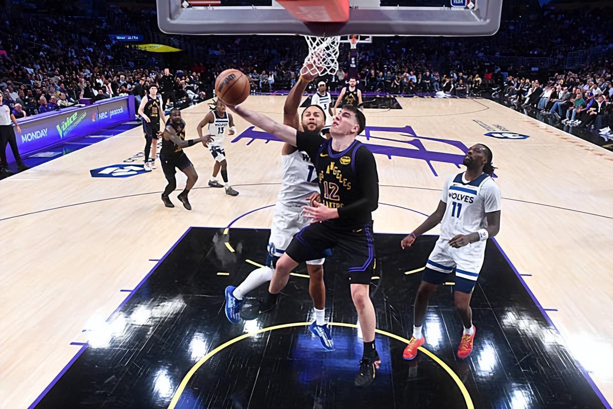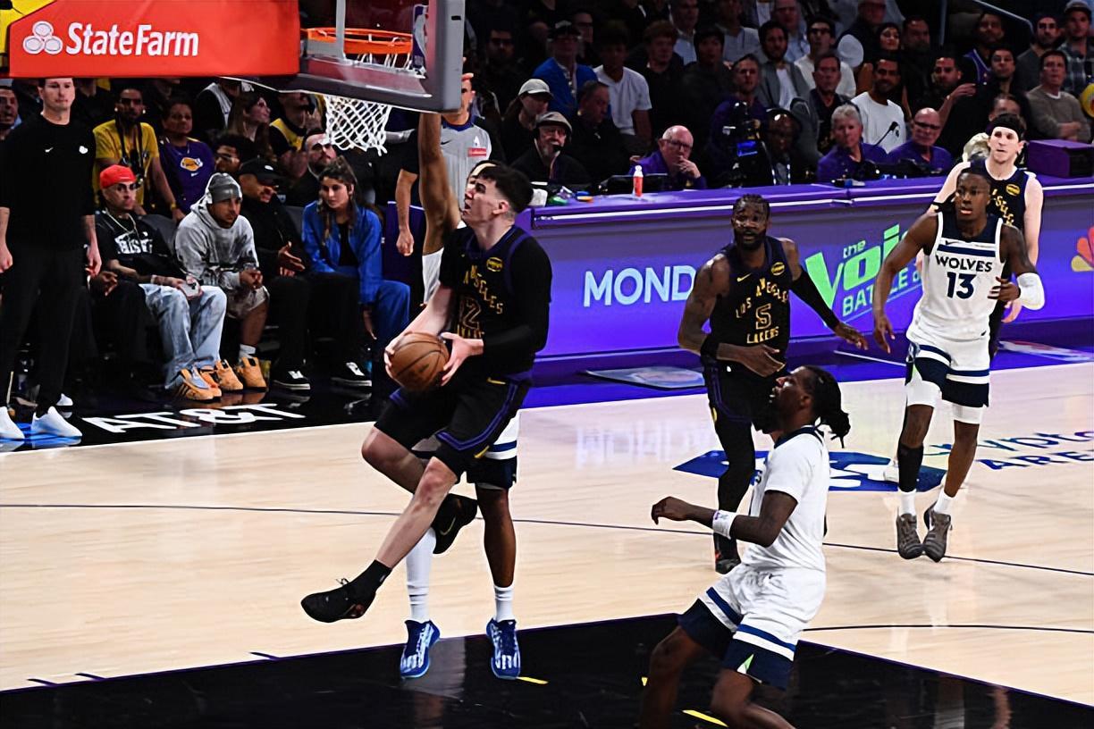 本场比赛中,湖人的替补侧翼新星杰克-拉拉维亚(Jake LaRavia)的表现令人喜忧参半。拉拉维亚全场出场24分47秒,投篮7中1,三分线外2中0,罚球8中6,得到了8分7篮板4助攻2抢断的数据,其中还包括了5个前场篮板,还有1次犯规,正负值为+13。拉拉维亚在进攻端虽然进攻效率不太理想,但是他出人意料地抢到了大量的前场篮板,在进攻端也算是给对手制造了一定的威胁。当然了,拉拉维亚的终结能力依然不太理想,外线投篮稳定性依然不佳,这也是他身上存在的不小的问题。不过拉拉维亚在防守端的表现非常不错,他在防守端确实是起到了很好的效果,发挥出了自己在这方面的价值。